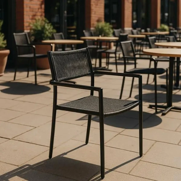 Deze terrasstoel is ideaal voor gebruik in tuinen, op terrassen, bij evenementen of in horeca-omgevingen. Creëer een gezellige sfeer voor uw gasten met de Terrasstoel Tropez.